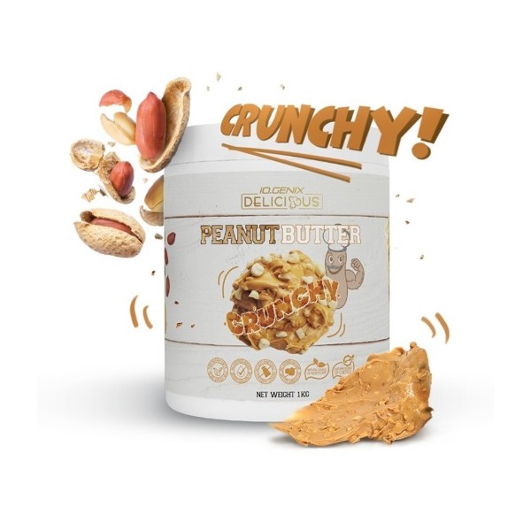Peanut Butter Crunchy de iO.Genix es una deliciosa crema de cacahuete con sabor y una textura crujiente increíble.