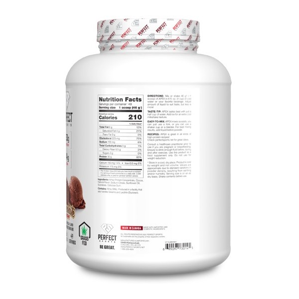 APEX Grass-Fed Whey Protein de Perfect Sports es un suplemento proteico en polvo que contiene el mejor concentrado de proteína de suero de leche de vacas criadas en pastos en libertad.
