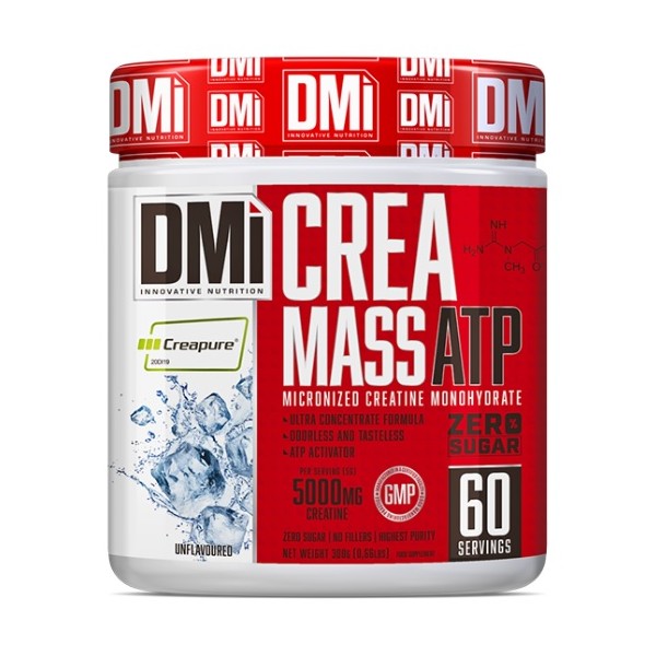 Crea Mass ATP 100% Creapure de DMI Innovative Nutrition es un suplemento en polvo que contiene monohidrato de creatina con la patente Creapure®, la creatina más reconocida a nivel mundial.