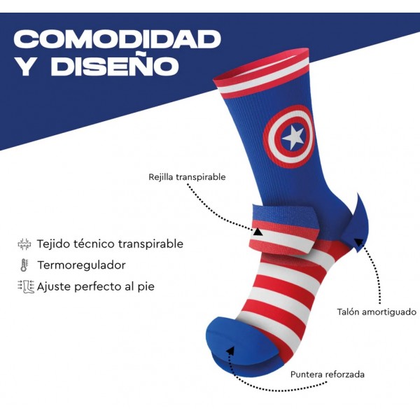 CALCETINES DEPORTIVOS FITNESS CAPITÁN AMERICA