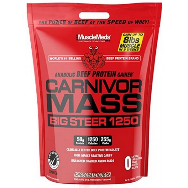 Carnivor Mass Big Steer 1250 de MuscleMeds es el ganador de peso rápido, limpio y altamente anabólico con auténtica proteína de carne que enciende la construcción muscular como ningún otro.