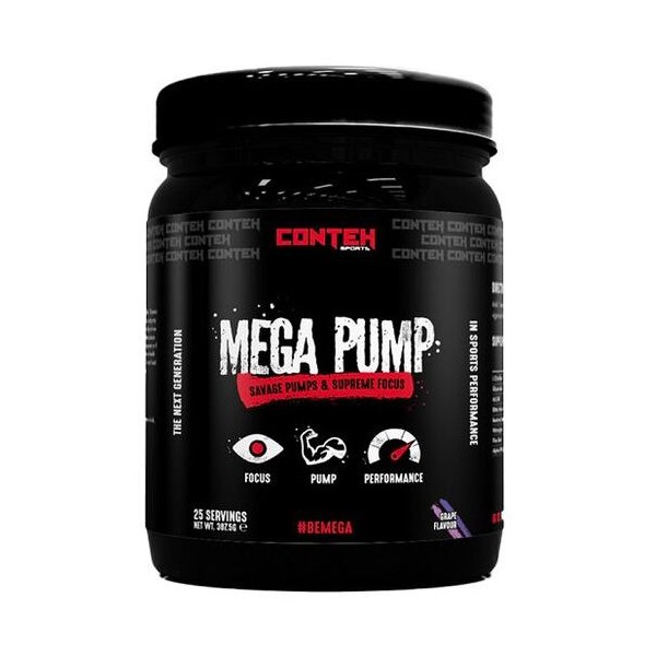 Mega Pump de Conteh Sports es un suplemento en polvo que contiene una fórmula de pre-entrenamiento libre de estimulantes diseñado para proporcionarte unos enormes bombeos musculares y una gran concentración mental.