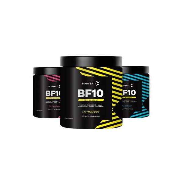 BF10 Pre-Workout de Body and Fit es un suplemento en polvo que contiene una fórmula de pre-entrenamiento con 10 ingredientes activos de eficacia demostrada que ha sido diseñado para ayudarte a mejorar el rendimiento durante el entrenamiento, aportarte una energía explosiva y mejorar la concentración mental.