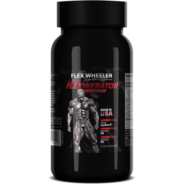 Flexinerator de Flex Wheeler Signature Series es un suplemento en cápsulas que contiene una fórmula termogénica solo apta para atletas experimentados a base de Lyzme 5®, cafeína, ácido hidroxicítrico, L-tirosina, extracto de café verde, teobromina, DL-Fenilalanina y cayena en polvo que ha sido diseñado para favorecer la pérdida de peso, suprimir el apetito, acelerar el metabolismo y proporcionar un incremento de los niveles de energía.
