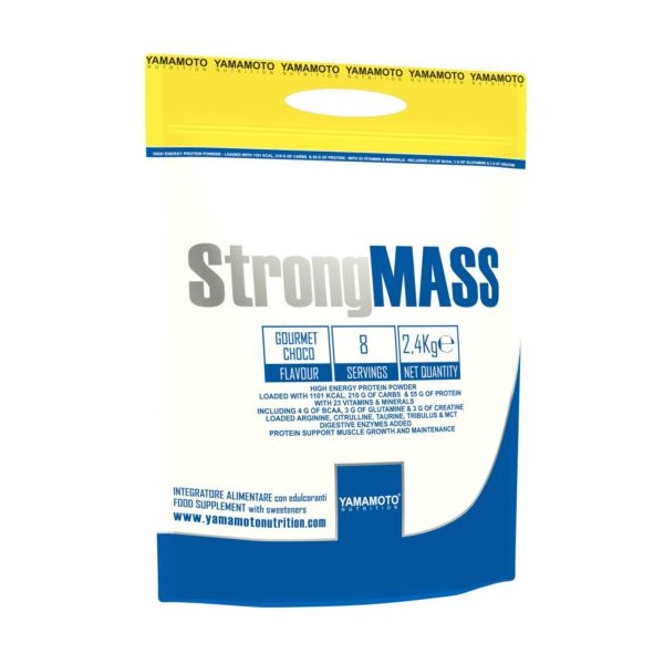 Strong MASS® de Yamamoto® Nutrition es un suplemento en polvo que contiene una fórmula profesional para aumentar la masa muscular con un 70% de carbohidratos, un 18% de proteínas, potenciado con creatina, glutamina, BCAAs, arginina y otros importantes aminoácidos, una combinación de grasas saludables de altísima calidad, extractos de plantas, vitaminas, minerales y enzimas digestivas para mejorar su asimilación.