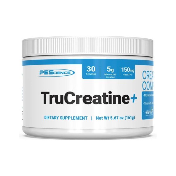 TruCreatine+ de PEScience es un suplemento en polvo que contiene monohidrato de creatina micronizada de primera calidad y elevATP®.
