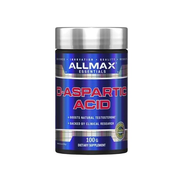 D-Aspartic Acid de Allmax Nutrition es el suplemento en polvo que contiene ácido D-aspártico en forma libre, un isomero racemato del ácido L-aspártico más común, que ha desmostrado en recientes investigaciones clínicas que es capaz de aumentar los niveles de testosterona hasta un 42% en humanos en solo 12 días de uso.