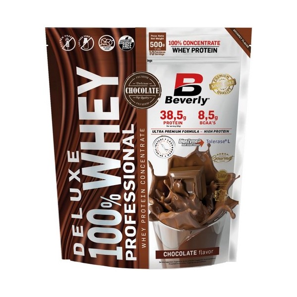 Deluxe 100% Whey Professional de Beverly Nutrition es una fórmula que contiene concentrado de proteína de suero de leche de la más alta calidad, con un alto valor biológico, que contiene todos los aminoácidos esenciales y con una excelente biodisponibilidad y digestibilidad.