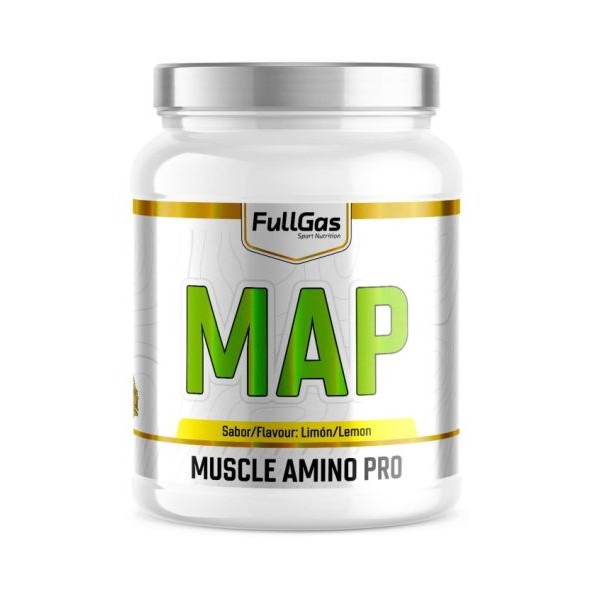 MAP Muscle Amino Pro de FullGas es un suplemento en polvo que contiene una combinación maestra de 9 aminoácidos esenciales con el fin de ser el soporte ideal para deportistas que sufren un intenso desgaste muscular.