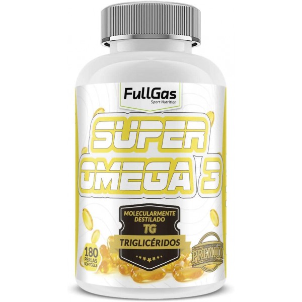 Super Omega 3 de FullGas es un suplemento en perlas que contiene 1000 mg por perla de aceite de pescado purificado de la más alta calidad rico en ácidos grasos omega 3 y enriquecido con vitamina E natural (D-alfa-tocoferol) añadida como antioxidante.