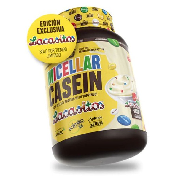 Micellar Casein Lacasitos de Big es un suplemento proteico en polvo que contiene caseína micelar de la más alta calidad hecha a base de Solmiko® de Glanbia Nutritionals®, elaborada a partir de suero lácteo fresco y nutricionalmente equilibrado.