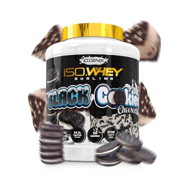 ISO.Whey Sublime de IO.Genix es un suplemento en polvo que contiene como materia prima principal una combinación de proteína de aislado de suero y concentrado de proteína de suero Lacprodan® de la más alta calidad y un delicioso sabor a tarta de queso y galleta negra con auténticos trocitos de galleta negra.