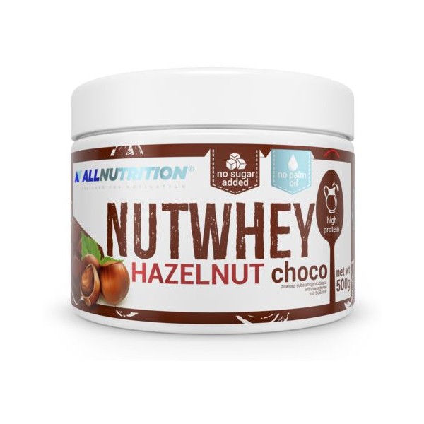 NutWhey Hazelnut Choco de AllNutrition es una deliciosa crema de avellanas hiperproteica con sabor a chocolate elaborada con ingredientes naturales, sin azúcares añadidos, ni aceite de palma.