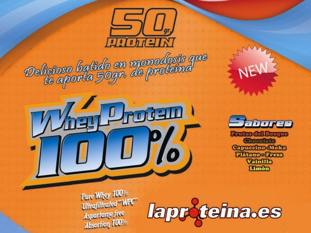 6 BOTELLAS MONODOSIS DE WHEY PROTEIN 100% 50 GR
