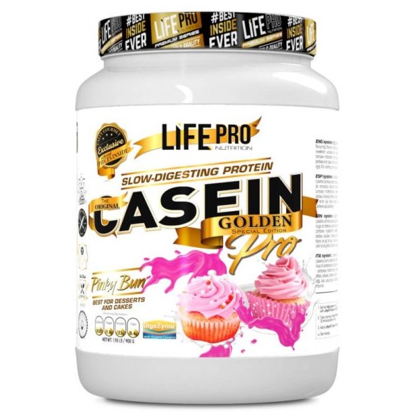 La principal característica de Casein Pro Golden es que se digiere de manera mucho más paulatina y lenta en comparación con otro tipo de proteínas. Se trata de la fuente de proteína más recomendada para periodos de ayuno o para tomar por la noche antes de dormir y para lograr un gran aporte de saciedad al consumirla (debido a las micelas y el tiempo que pertenece en el estómago).