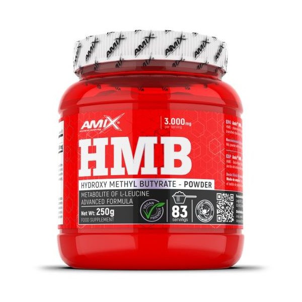HMB Powder de Amix™ Nutrition es un suplemento en polvo que contiene el 100% de beta-Hidroxi Beta-Metilbutirato (HMB), un metabolito del aminoácido L-leucina que el cuerpo humano es capaz de producir a partir de dicho aminoácido y que puede ayudar a prevenir el catabolismo muscular e incrementar el tamaño y la fuerza muscular, así como reducir la grasa corporal.