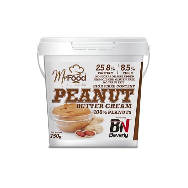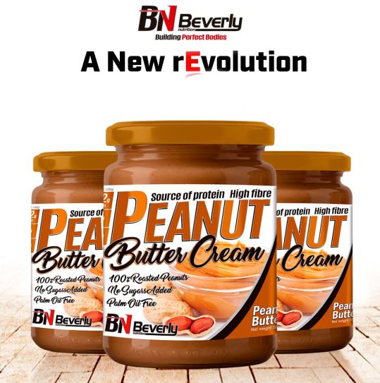Peanut Butter Cream de Beverly Nutrition es una deliciosa crema de cacahuetes libre de aceite de palma, sin azúcar, sal o aditivos añadidos y elaborada con el 100% de cacahuetes tostados triturados.