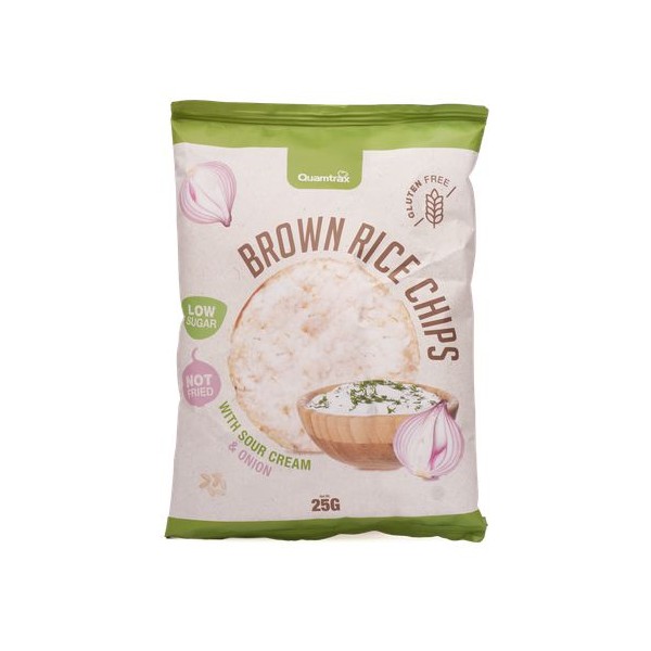 Brown Rice Chips de Quamtrax son unos deliciosos y saludables chips de arroz integral orgánico con sabor a queso o con sabor a crema agria y cebolla, una alternativa ideal a las chips de maíz.