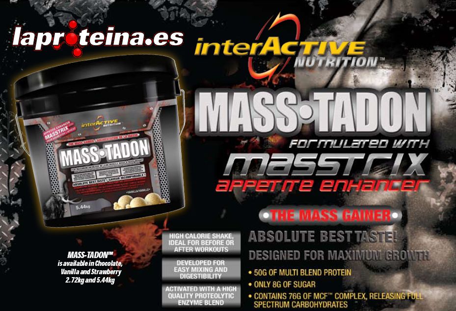 Mass-Tadon de Interactive Nutrition te aportará la asombrosa cantidad de 50 gr de proteínas por servicio.