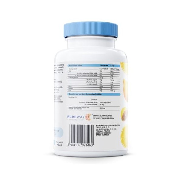 - Proporciona 1.000 mg de PureWay-C® por cápsula.