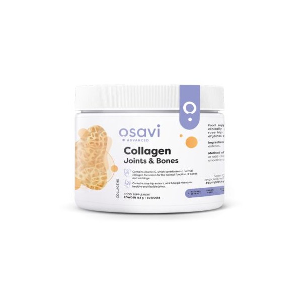 Collagen Joints & Bones de Osavi es un suplemento en polvo que contiene colágeno FortiBone® (péptidos de colágeno bioactivos), posiblemente el mejor colágeno del mercado hoy en día para el cuidado de las articulaciones y huesos.