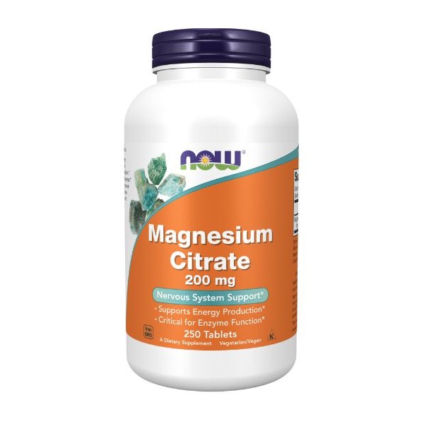 Magnesium Citrate 200 mg de Now Foods es un suplemento en tabletas que proporciona 200 mg de magnesio citrato por tableta, un mineral que es fundamental para la producción y el metabolismo de energía, la contracción muscular, la transmisión de impulsos nerviosos y la mineralización ósea.
