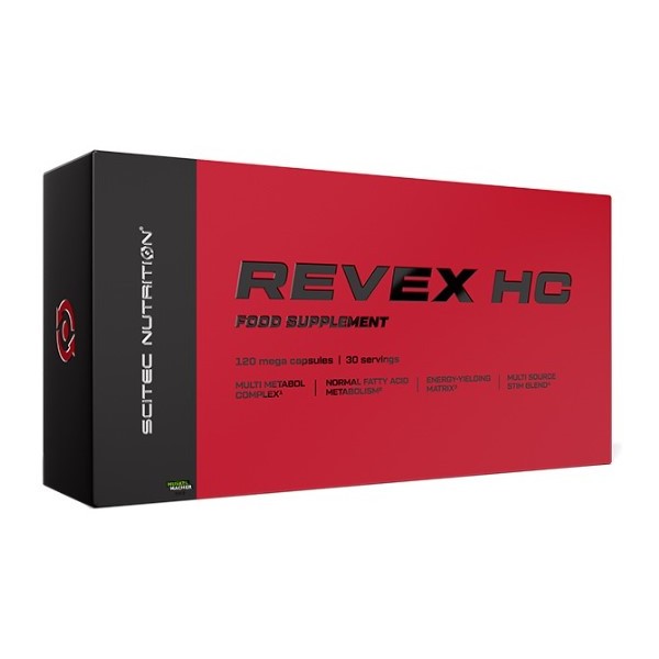 Revex HC de Scitec Nutrition es un suplemento en cápsulas que contiene una fórmula termogénica muy potente con 29 ingredientes activos, agrupados en 3 grandes categorías, un complejo para optimizador el metabolismo de la grasa, una matriz energética y una matriz estimulante de múltiples fuentes.