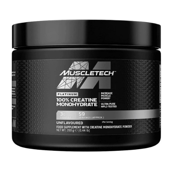 Platinum 100% Creatine dentro de la línea Essential Series de la marca Nº1 en todo el mundo Muscletech® es un suplemento en polvo que proporciona 5 gramos de monohidrato de creatina ultra-pura micronizada de máxima calidad.