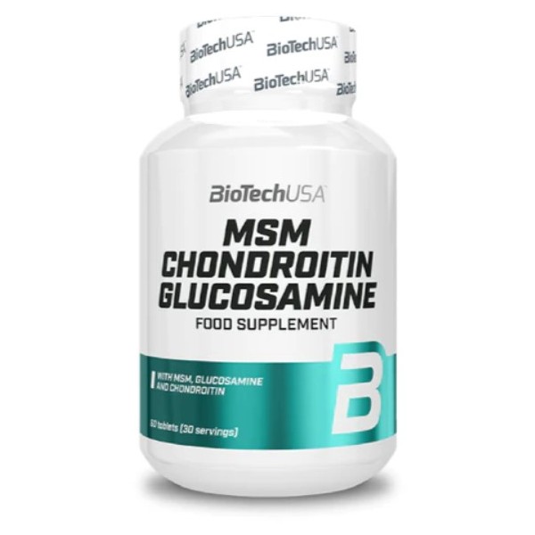 MSM Chondroitin Glucosamine de BioTech USA es un suplemento a base de MSM, glucosamina sulfato y condroitina diseñado para ofrecer un soporte a la salud de los huesos y una protección de las articulaciones y elasticidad de los cartílagos.
