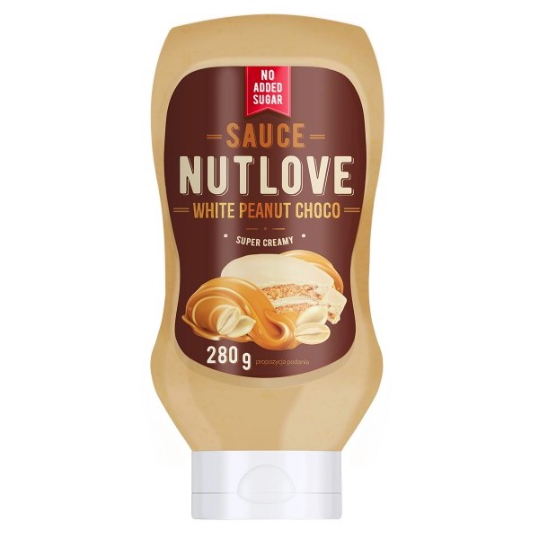 Nutlove Sauce White Peanut Choco de AllNutrition es una deliciosa salsa elaborada a base cacahuete con un delicioso sabor a chocolate blanco que podrás disfrutar como complemento a toda clase de platos o postres o para tomar sola.