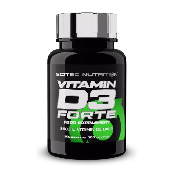 Vitamin D3 Forte de Scitec Nutrition es un suplemento en cápsulas que te proporciona 2600 UI de vitamina D3 por dosis de 1 cápsula.