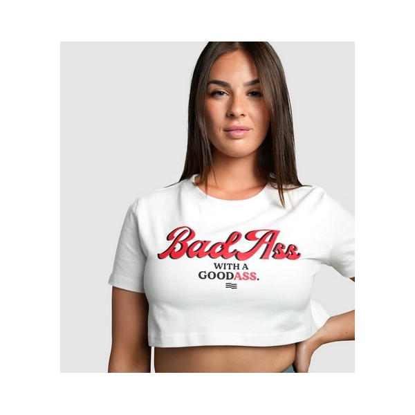 Camiseta de corte por debajo del pecho con un eslogan atrevido.