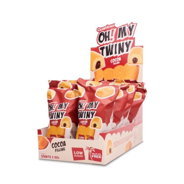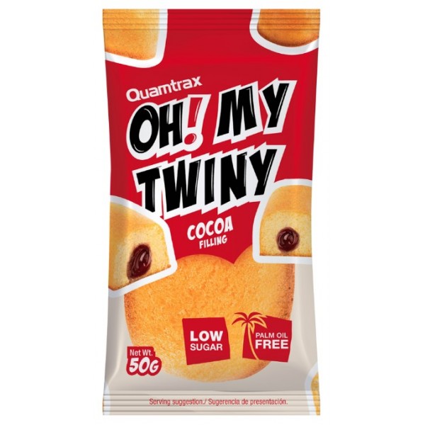 Oh! My Twiny Cocoa Filling es un pastelito de relleno cremoso de cacao. Oh! My Twiny Cocoa Filling están elaborados de una masa esponjosa rellena de un relleno cremoso de cacao en su interior como los famosos pastelitos americanos pero con un contenido bajo en azúcar y sin aceite de palma.