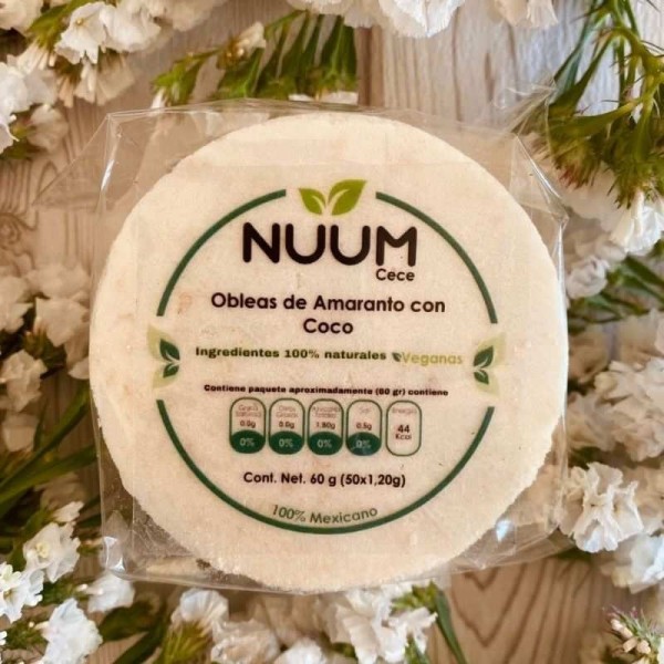 Obleas de amaranto sin azúcares añadidos. Producto 100% mexicano. Aptas para veganos.