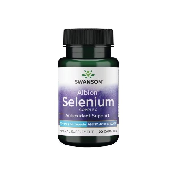 Albion Selenium Complex de Swanson es un suplemento en cápsulas que proporciona 200 mcg de selenio (como glicinato de selenio Albion®), por dosis de 1 cápsula, una forma de selenio patentada con una absorción mejorada.
