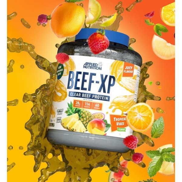 Beef-XP de Applied Nutrition es un suplemento en polvo que contiene el 100% de aislado de proteína hidrolizada de carne de vacuno de alta calidad.