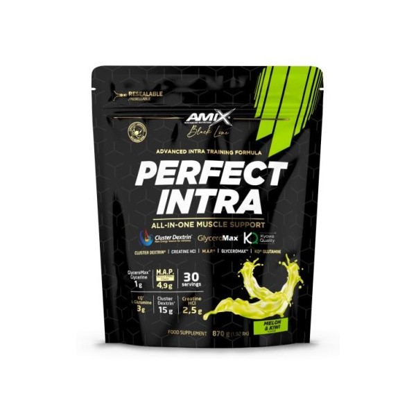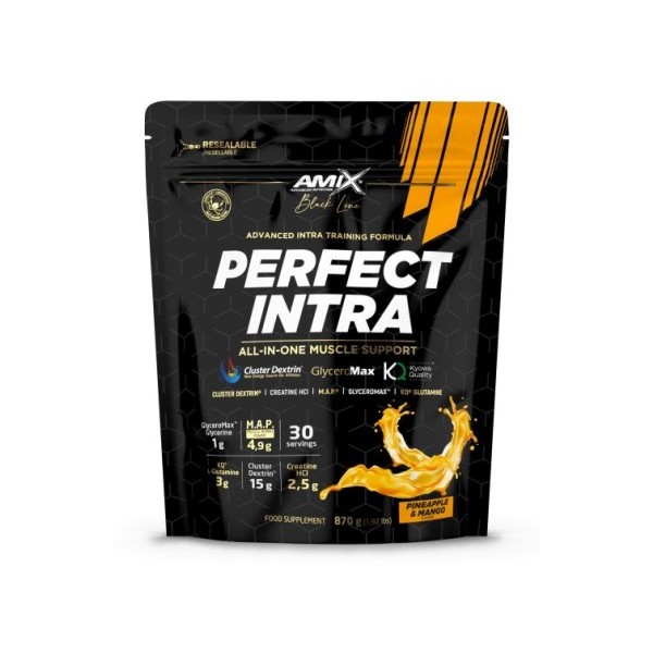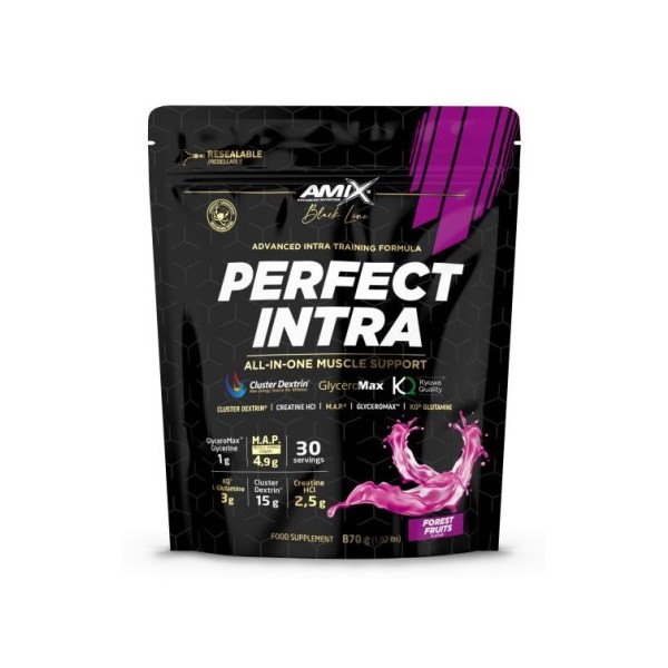 Perfect Intra de Amix™ Nutrition es un suplemento en polvo que contiene una fórmula todo en uno de soporte muscular diseñada especialmente para tomar durante el entrenamiento que combina dextrina cíclica altamente ramificada (HBCD) Cluster Dextrin®, GlyceroMax™, creatina HCl, aminoácidos M.A.P.®, L-Glutamina Kyowa Quality® y las vitaminas y minerales más importantes.
