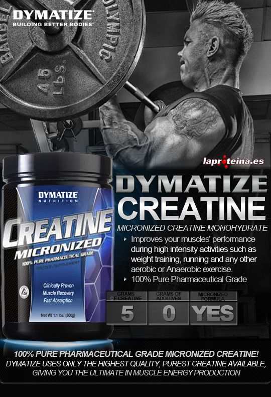 Dymatize ha conseguido el valor farmacéutico mas puro de creatina monohidrato. Nutre tus músculos con este compuesto precursor de energía. Te ayudará tener los músculos listos para actividades de alta intensidad como la carrera, el levantamiento de pesas y cualquier otro ejercicio aeróbico o anaeróbico.