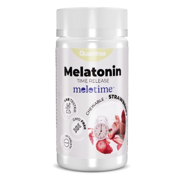 Melatonin Time Release de Quamtrax Nutrition es un suplemento que se presenta en forma de deliciosas tabletas masticables con sabor a fresa que contiene una fórmula que combina 1,9 mg de melatonina de liberación prolongada (Melotime™) y vitamina B6, que ha sido diseñada para ayudarte a conciliar el sueño y favorecer la recuperación física y mental, para que las horas de descanso dejen de ser una pesadilla y se conviertan en un momento clave para alcanzar tus objetivos en un estado óptimo a todos los niveles.