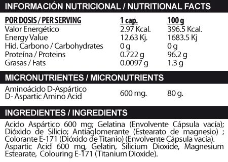 El único anabólico legal que ha demostrado mediante estudio científico aumentar la testosterona de forma natural y legal. Contiene ácido D-Aspártico en cápsulas.