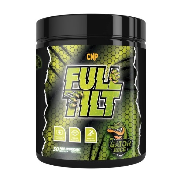 Full Tilt Pre-Workout de CNP Professional es un suplemento en polvo que contiene una potente fórmula de pre-entrenamiento con estimulantes y nootrópicos para aumentar la energía y mejorar la concentración, a la vez que te ayuda a mejorar el rendimiento deportivo con las dosis efectivas de ingredientes con evidencia demostrada.