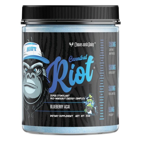 Cannibal Riot de Chaos and Pain es un suplemento en polvo que contiene una fórmula de pre-entrenamiento súper estimulante no apta para principiantes.