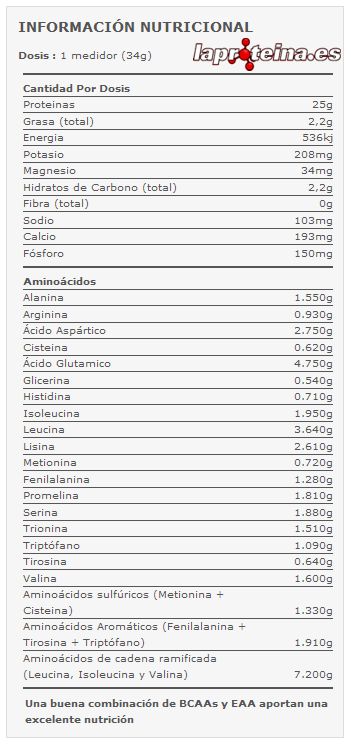 Contiene proteínas de lactoalbúmina e inmunoglobulinas, vitales para el correcto funcionamiento del sistema inmunológico, el desarrollo muscular y la recuperación.