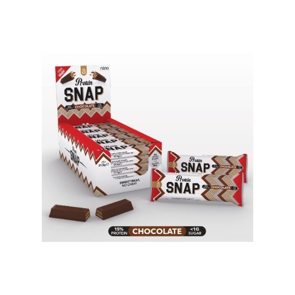 Protein Snap de NANO Supps son unas deliciosas barritas crujientes de chocolate con leche que una vez que las pruebes ya no podrás parar.