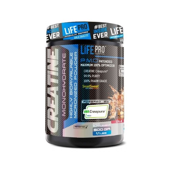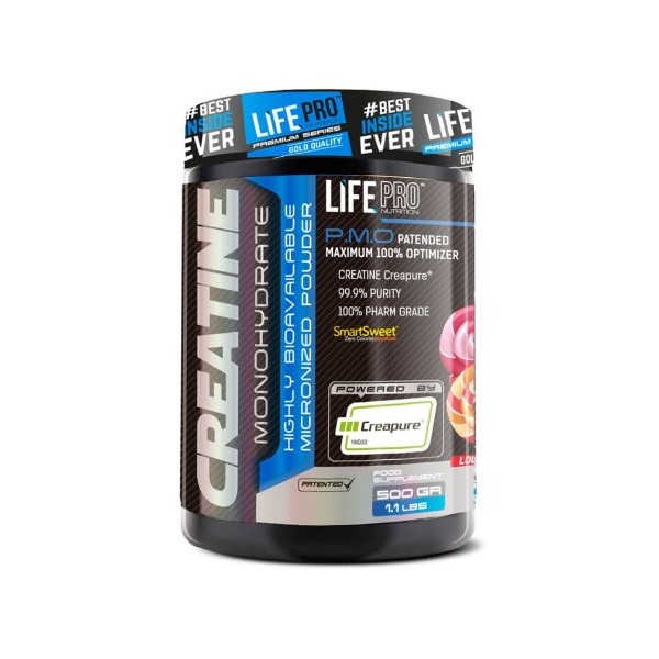 Creatine Monohydrate Creapure de LifePro Nutrition es un suplemento en polvo que contiene monohidrato de creatina Creapure® con un delicioso sabor a cola, lollipop o naranja.