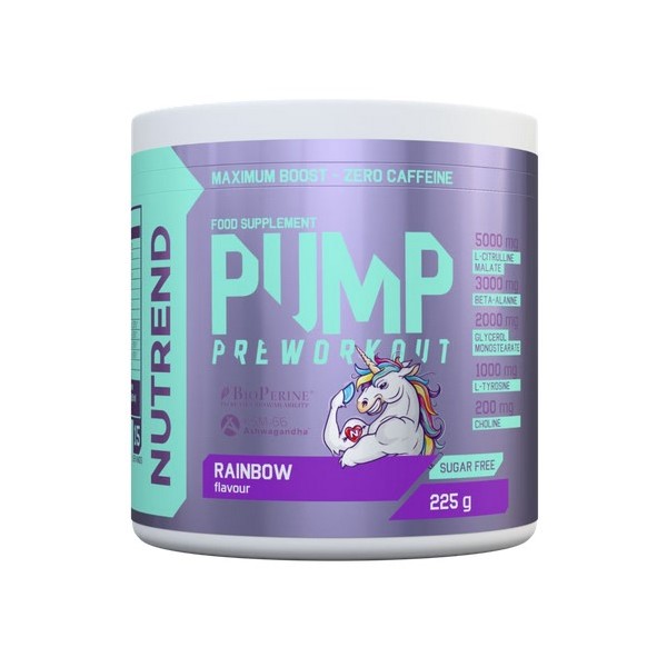 Pump Pre-Workout de Nutrend® es un suplemento en polvo que contiene una fórmula de pre-entrenamiento libre de estimulantes diseñada para proporcionarte el máximo bombeo muscular y una mejora del rendimiento físico y mental durante tu entrenamiento.
