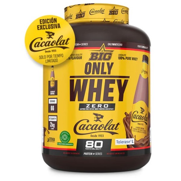 Descubre la nueva proteína Only Whey™ Zero Cacaolat fruto de una nueva colaboración de BIG® y CACAOLAT®. Disfruta ya del genuino sabor a cacao que te acompañó durante toda tu infancia. Recupera uno de los sabores más auténticos de tu infancia, pero ahora con un contenido muy bajo en grasas e hidratos de carbono y con un aporte extraordinario de proteínas.
