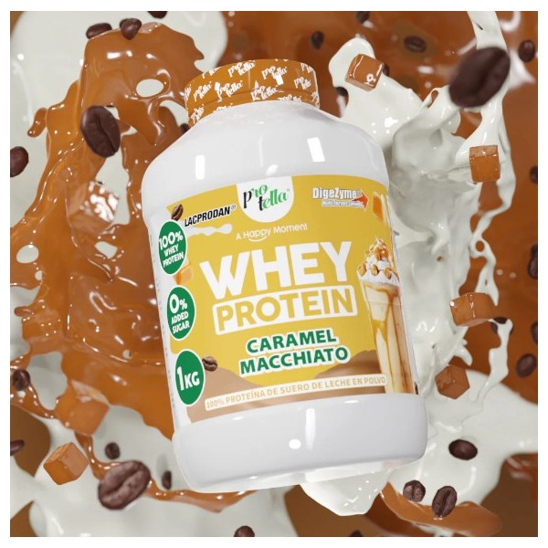 Whey Protein de Protella es un suplemento proteico en polvo que contiene el 100% de concentrado de proteína de suero Lacprodan® Whey Protein, una de las mejores materias primas existentes en el mercado producida por Arla Foods que se ha enriquecido con el complejo multienzimático DigeZyme® y que puedes encontrar en 6 deliciosos sabores para los más exigentes.
