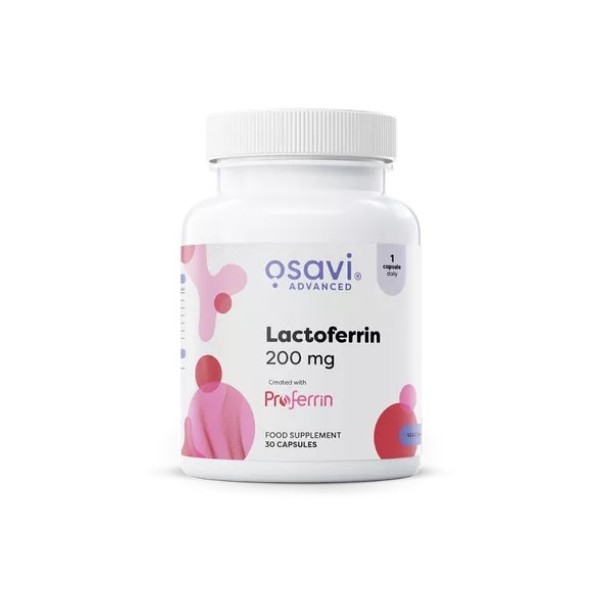 Lactoferrin 200 mg de Osavi es un suplemento en cápsulas que proporciona 200 mg de lactoferrina (Lactoferrin Proferrin®), una proteína del grupo de las glicoproteínas que tiene la capacidad de unirse y transportar hierro.
