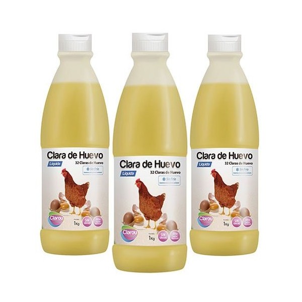 La Clara de Huevo Líquida de Clarou es un producto compuesto exclusivamente por 3 envases de 1 litro que contiene cada uno 32 claras de huevo en estado líquido y que gracias a su proceso de elaboración no necesita refrigeración hasta que se abra por primera vez.